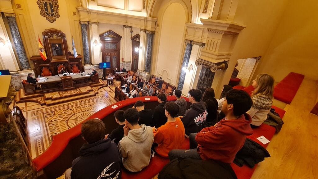 El alumnado de 2º curso del Ciclo Medio de Gestión Administrativa asistió, otro año más, a una sesión ordinaria del pleno municipal del Ayuntamiento de A Coruña, que es el órgano de máxima representación política de los ciudadanos en el gobierno municipal, y está formado por la Alcaldesa, Inés Rey, y el conjunto de Concejales/as electos.