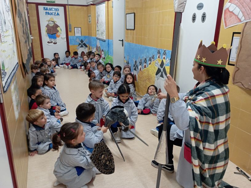 En este tercer trimestre en Educación Infantil estamos viviendo aventuras en La Mancha, conociendo a Miguel de Cervantes, Don Quijote, Sancho Panza, Dulcinea … Y entre otras actividades, hemos asistido al nombramiento de los caballer@s de la Grande Obra.