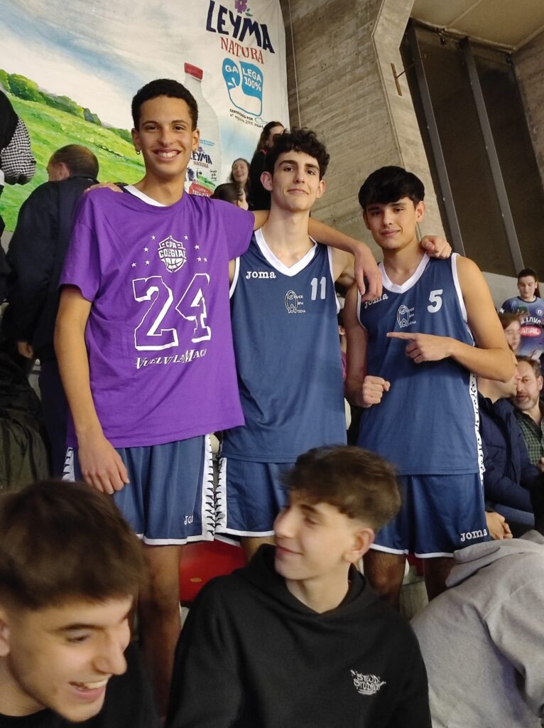 Nuestro equipo de la Copa Colegial apoyando al Básquet Coruña ante el Estudiantes